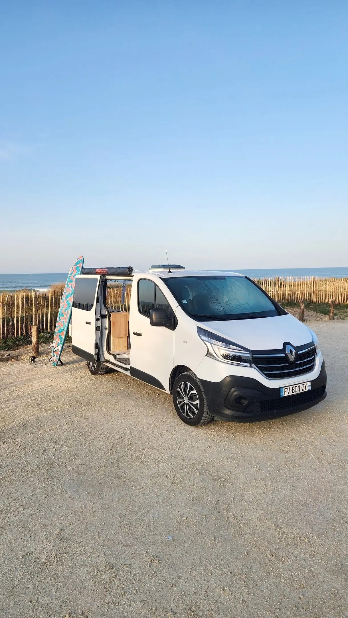 Voici Yukon, notre Renault Trafic aménagé avec soin, prêt à vous emmener découvrir la côte Atlantique, les îles ou simplement vous offrir un week-end au vert.